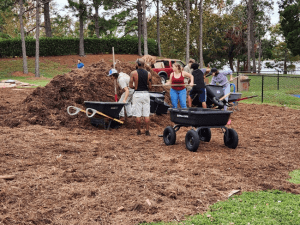 Microforests engage community interest and volunteerism, creating ownership in an asset that will serve generations of future residents. Here we see residents of Stoneybrook Golf and County Club working shoulder-to-shoulder with local students and environmentalists in a gratifying and educational partnership.